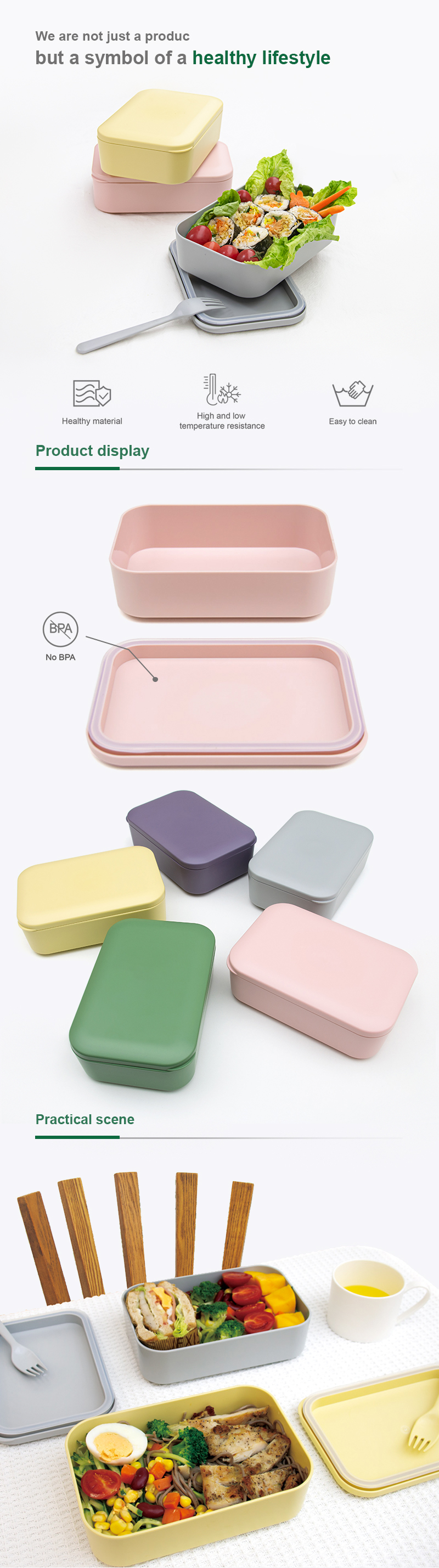 Eco-Friendly: The PLA lunch boxes are made from sustainable non-major crops, resulting in over 60% less carbon offset than traditional petroleum-based plastic, which is unsustainable and toxic.