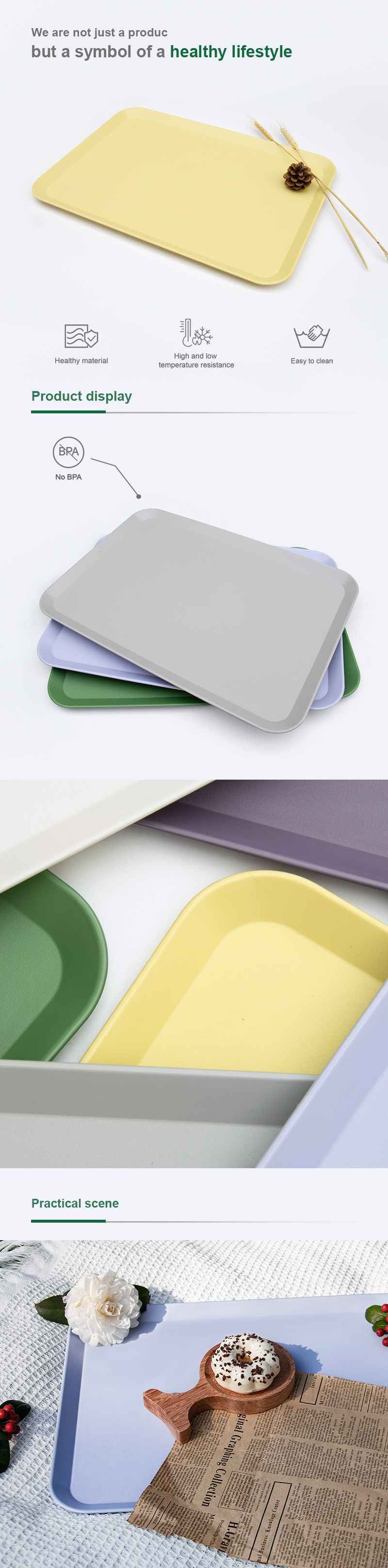 Durable and Chic: Younghome is a leader in pure, plant-based, reusable dinnerware. The PLA tray is an Non-Toxic food tray, direct food contact with this tray is available. This PLA food serving tray is shatterproof and will not lost its flat surface overtime.