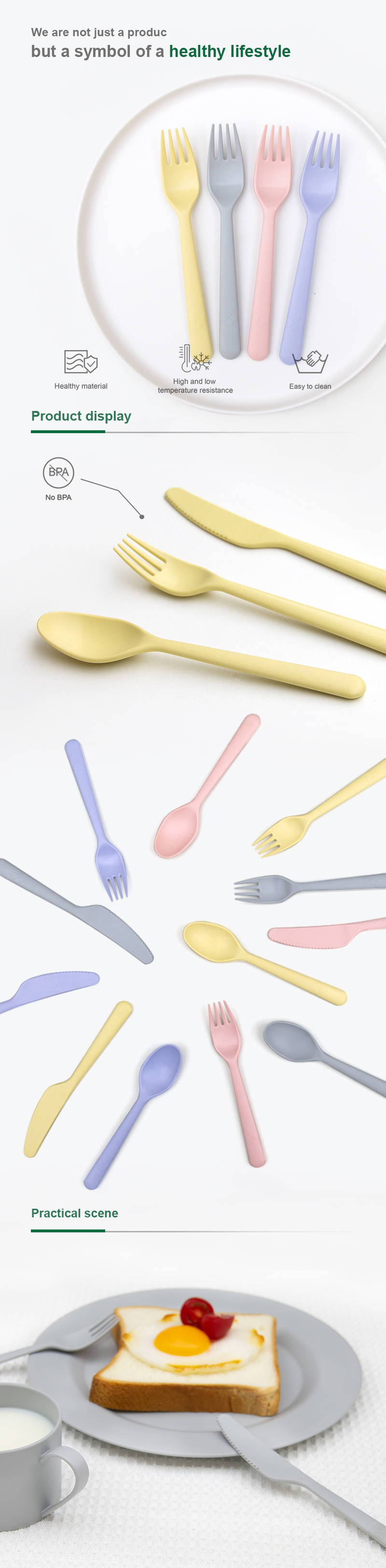 Easy to Care and Use: The unibody spoon and fork set has no hidden or small parts that may cause bacterial growth. They are easy to clean and store. They're also dishwasher safe if you prefer to use a dishwasher